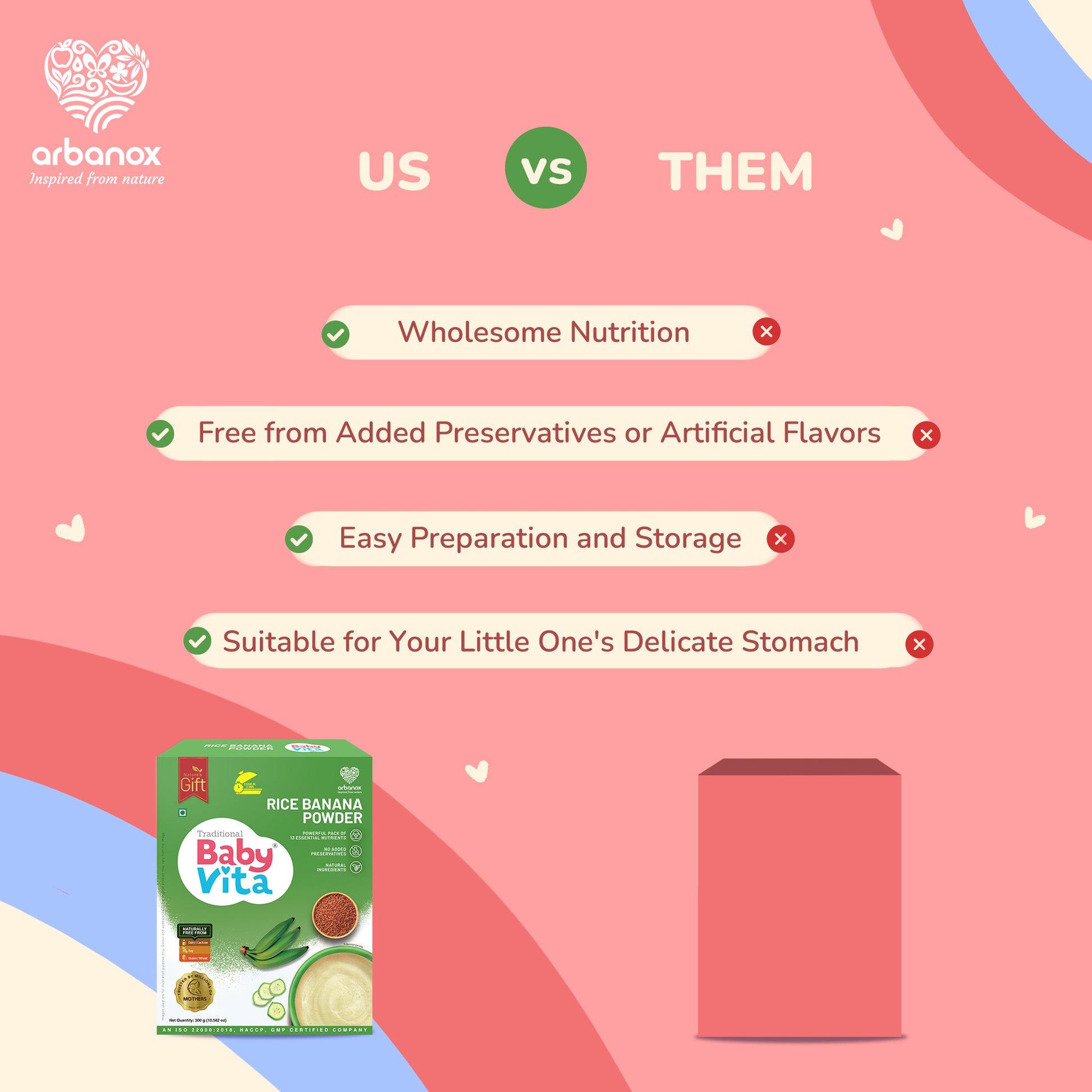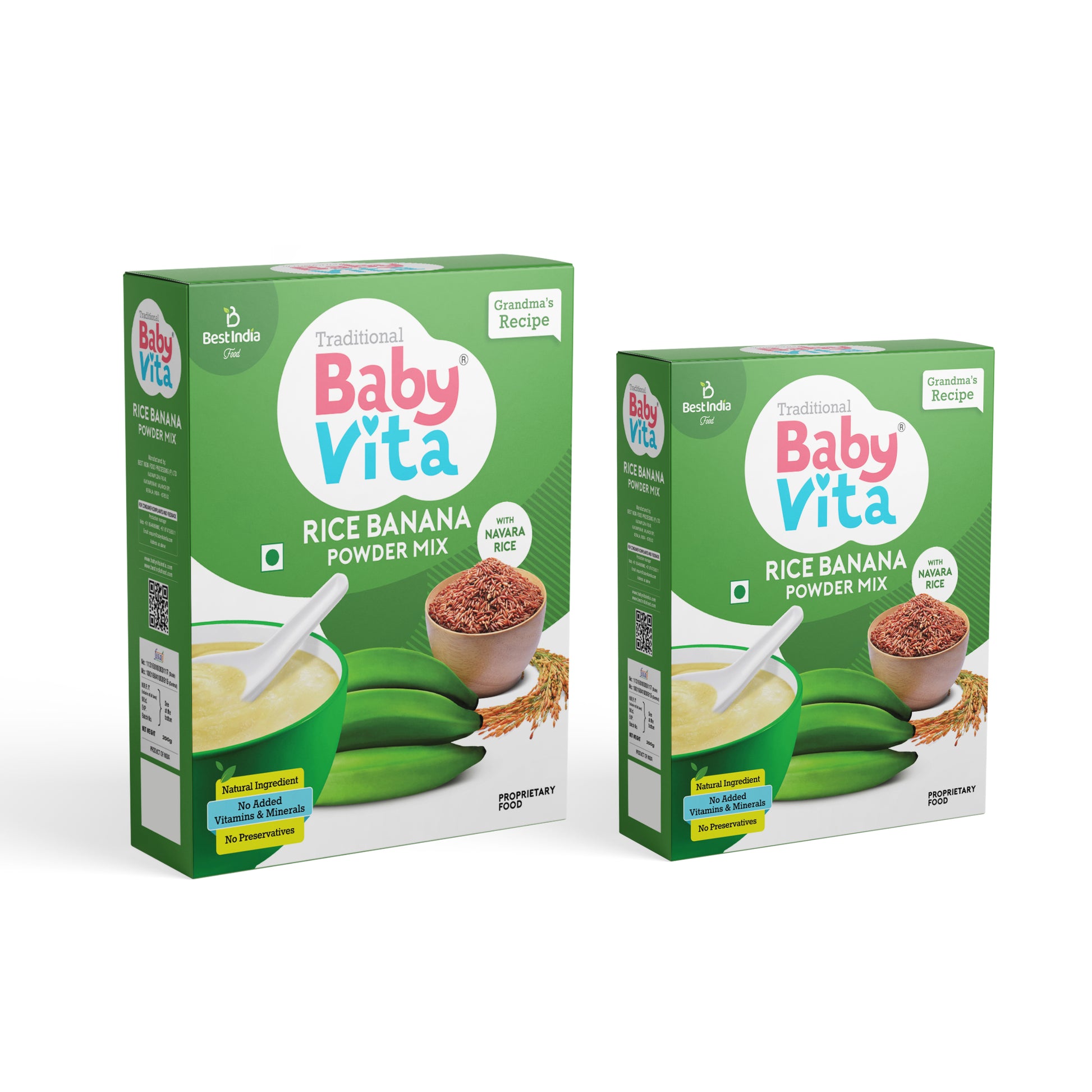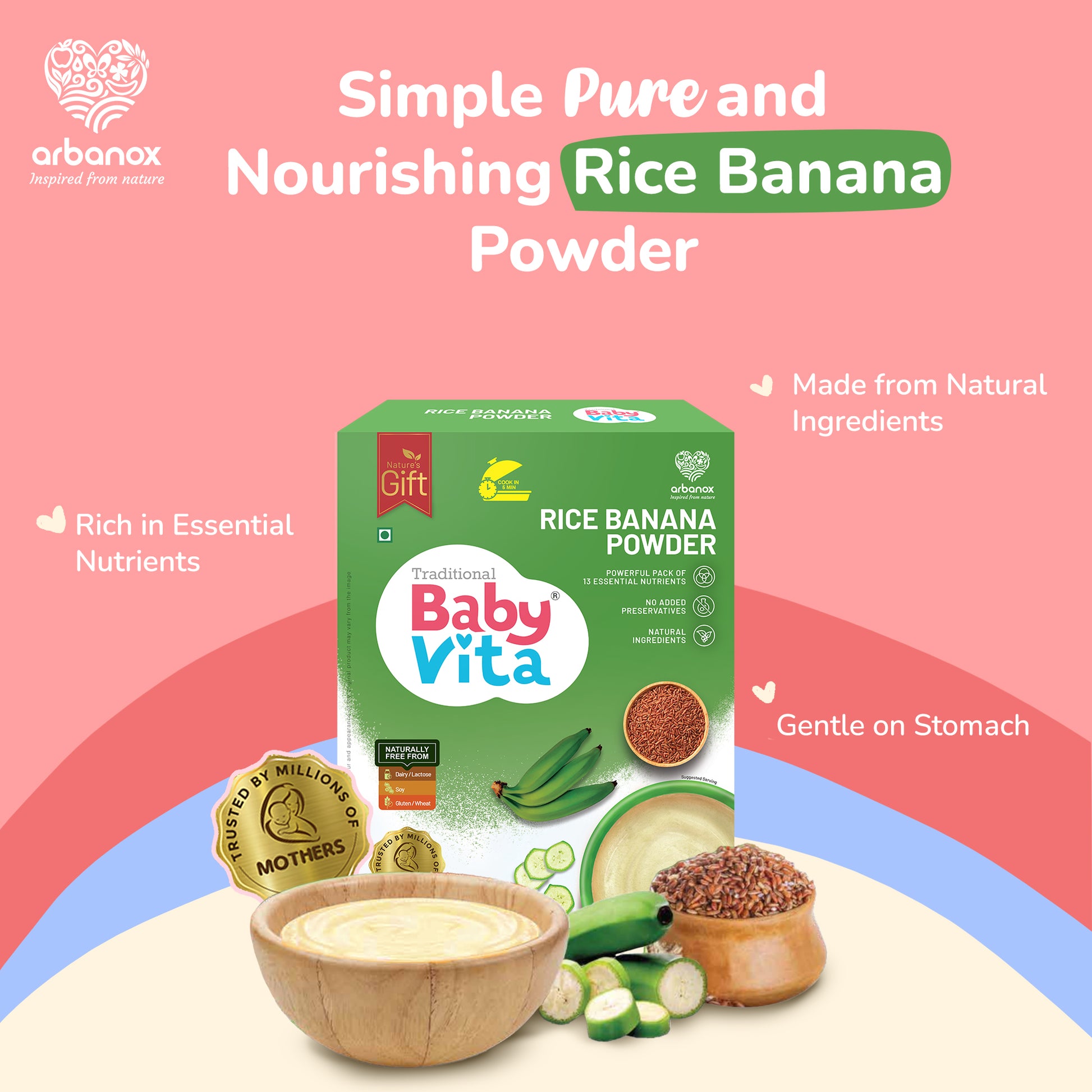 Babyvita® Rice-Banana Powder Mix | No Preservatives | No Added Vitamins & Minerals, Enriched With Navara Rice, Nut Grass (300gm + 200 gm, Pack of 2)