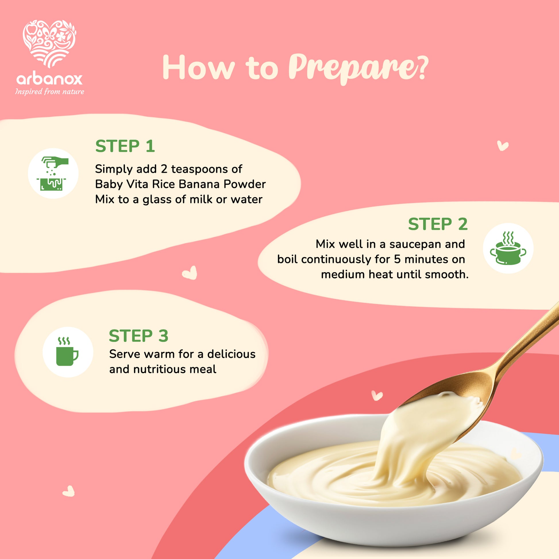 1. Take 2 teaspoons of Traditional BabyVita Rice Banana Powder