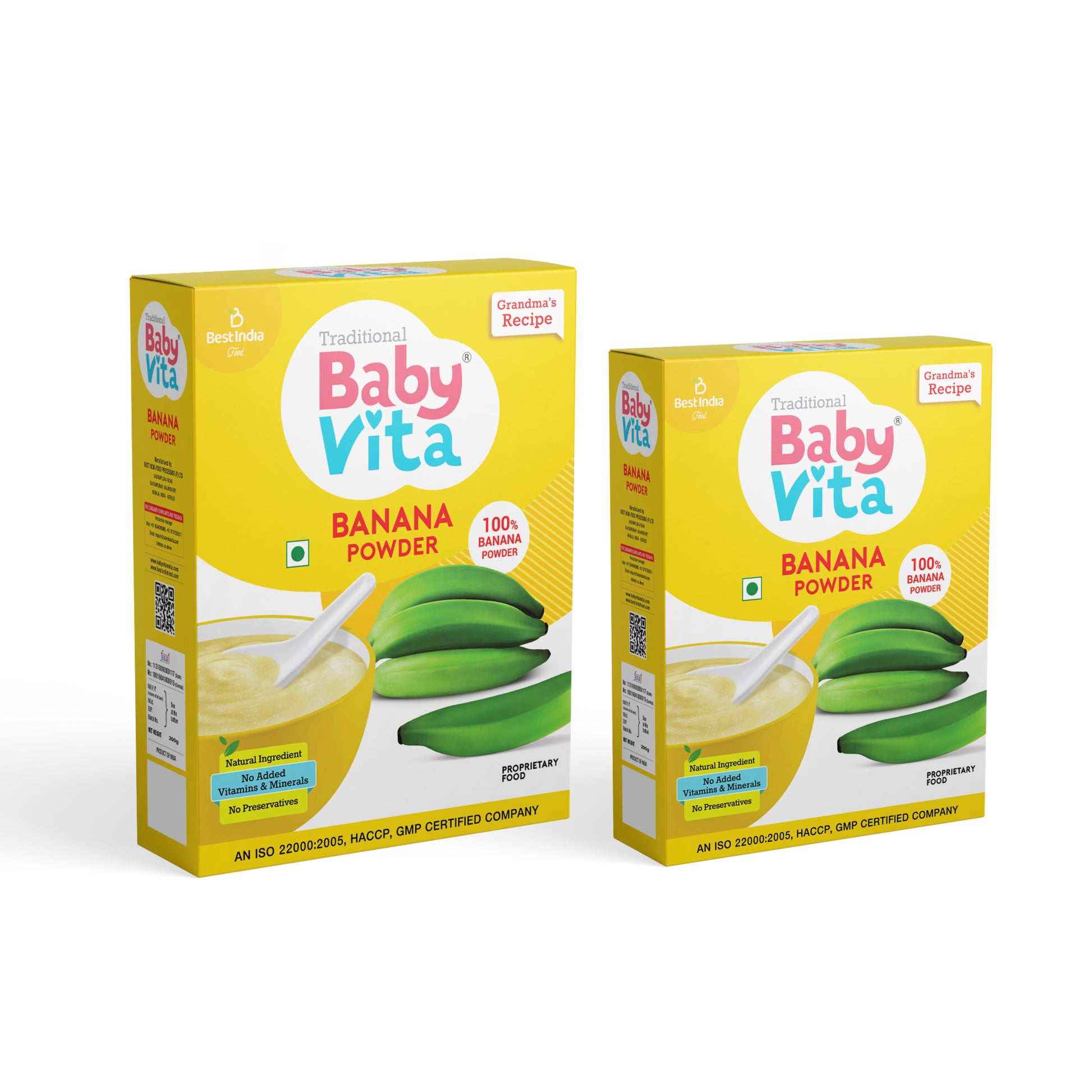 Traditional BabyVita Banana Powder is made by drying and grinding unripe Nendran bananas into a fine powder. It is a healthy and nutritious food option for little ones due to its natural sweetness, fiber content, and essential nutrients. This powder can be introduced to little ones as a traditional food or supplement to their regular diet.