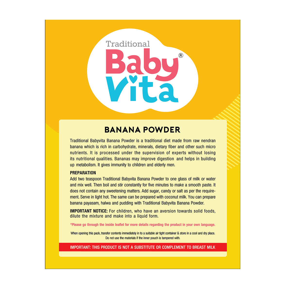 - Take 2 teaspoons of Traditional BabyVita Banana Powder