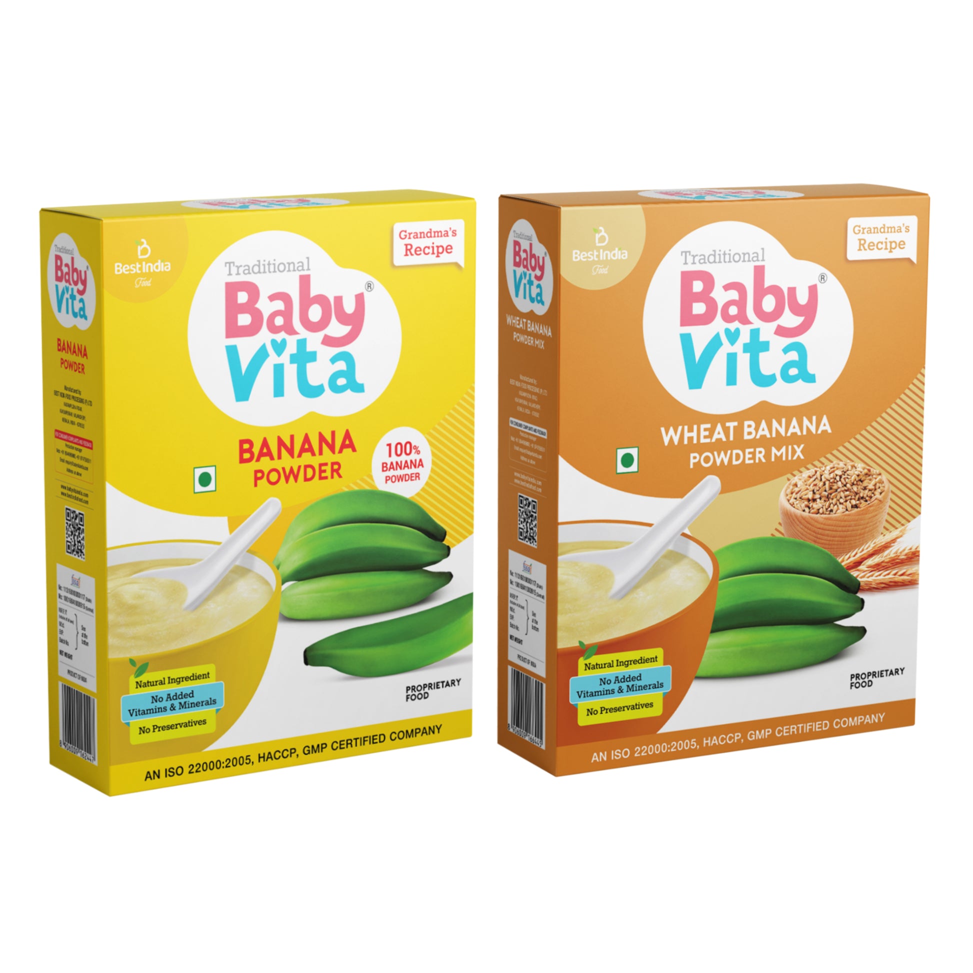 BabyVita Powder Mix - Banana Powder + Wheat Banana Powder Mix Refill Pack of 2 - 400 gm ( Combo Pack of 200 gm x 2)