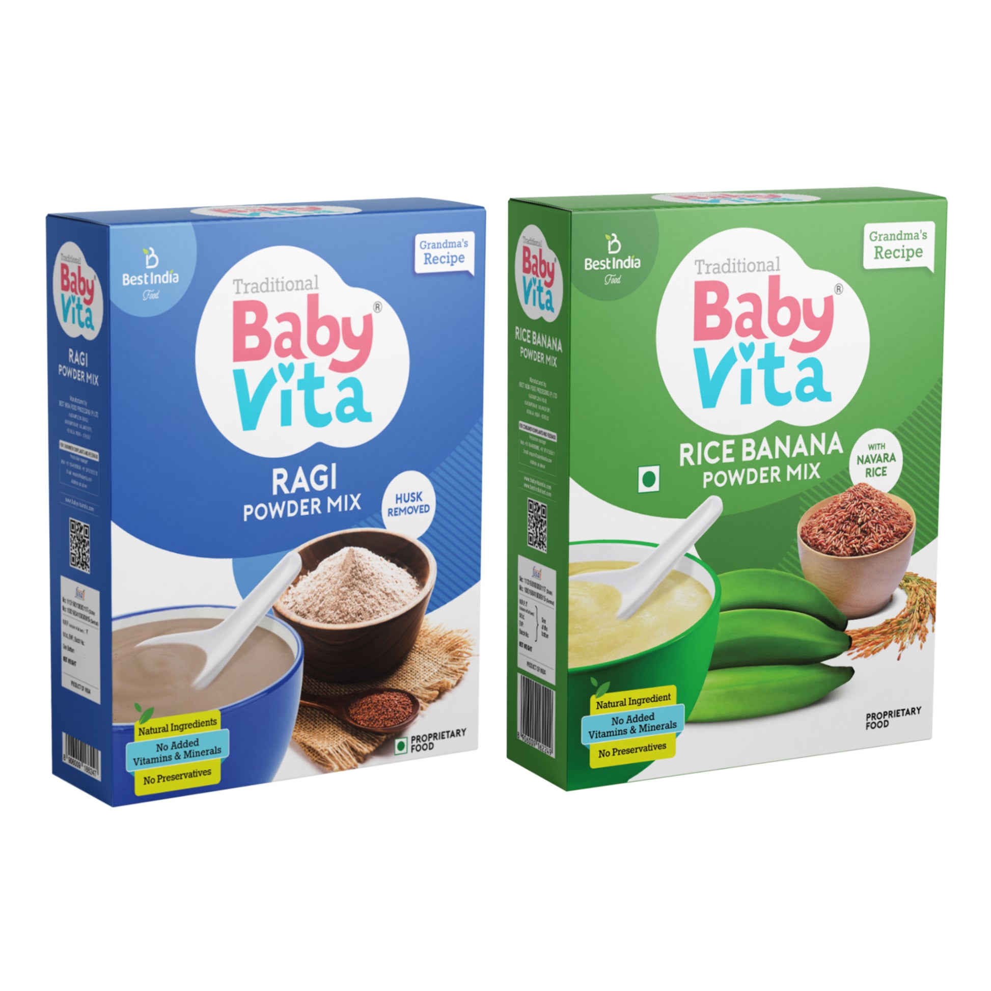 BabyVita Powder Mix - Rice Banana Powder & Ragi Powder Mix Refill Pack of 2 - 400 gm ( Combo Pack of 200 gm x 2)