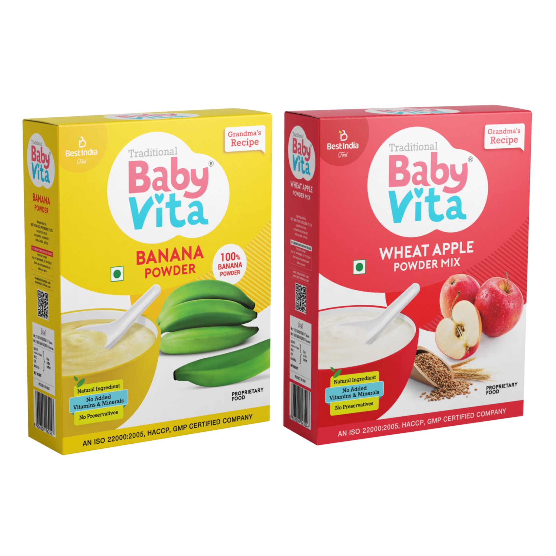 BabyVita Powder Mix - Wheat Apple Powder Mix & Banana Powder Mix Refill Pack of 2 - 400 gm ( Combo Pack of 200 gm x 2)