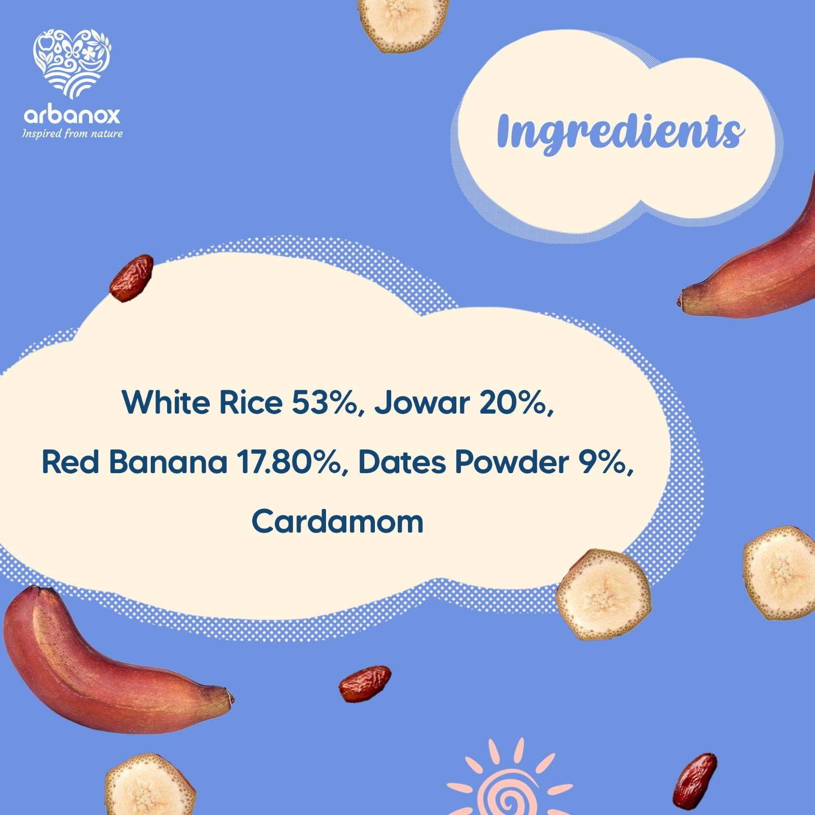 Looking for a healthy and nutritious meal for your little one? Introducing Arbanox Babyvita’s Red Banana Dates Rice to your child’s daily diet is a great way to support his/her early growth and development. This age-old Grandma’s recipe is a traditional blend of red bananas, dates, and rice that makes for a scrumptious and wholesome diet that can be prepared in a matter of minutes.